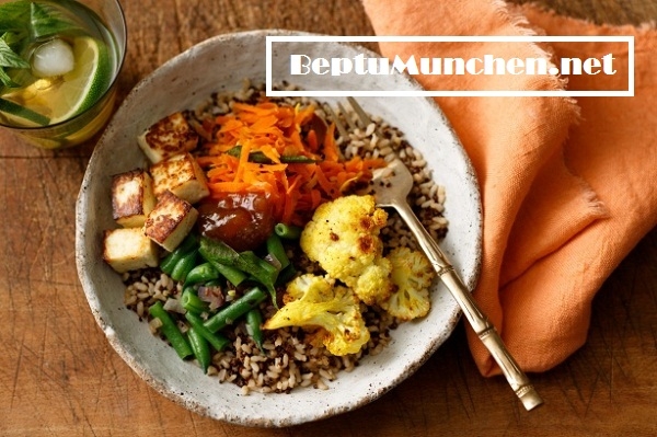 Bước 4. Rán đậu trên bếp điện từ Munchen khoảng 3 – 4 phút hoặc cho đến khi vàng thơm. Tiếp đến, chia quinoa và cơm ra 4 chiếc bát, chia đều đậu, cà rốt, súp lơ và đậu lên trên phần cơm. Xịt tương ớt vừa ăn.