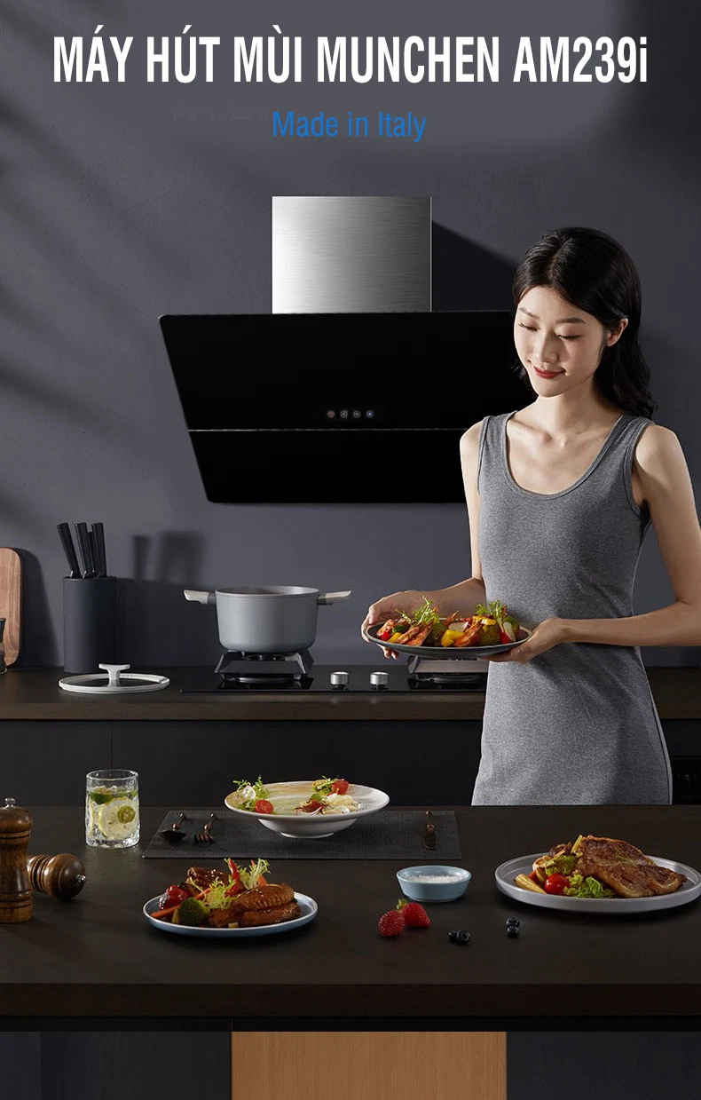 Đời sống ngày càng được nâng cao, kéo theo là sự gia tăng nhu cầu trang hoàng cho căn bếp của gia đình. Họ luôn tìm kiếm các sản phẩm chất lượng nhằm giúp cho căn bếp thêm sạch sẽ, thơm tho. Một trong các sản phẩm đang rất hot trên thị trường hiện nay là máy hút mùi Munchen AM239i. Vậy đâu là lý do khiến máy này được khách hàng tin dùng đến như vậy. Hãy cùng khám phá qua bài viết dưới đây.