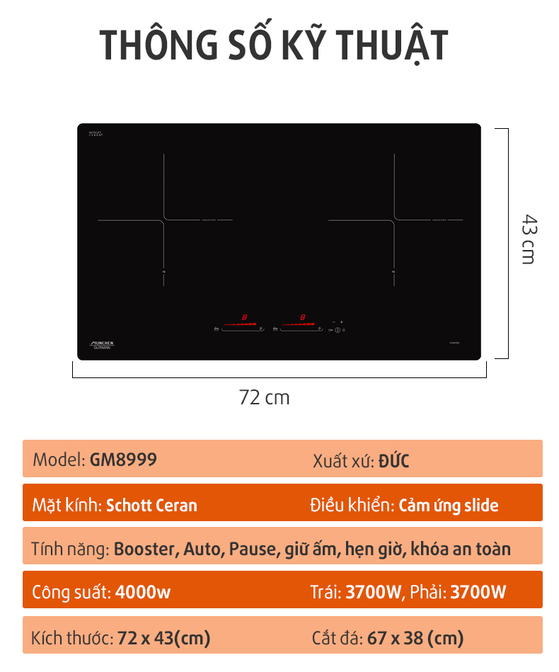 Thông số bếp từ munchen gm 8999