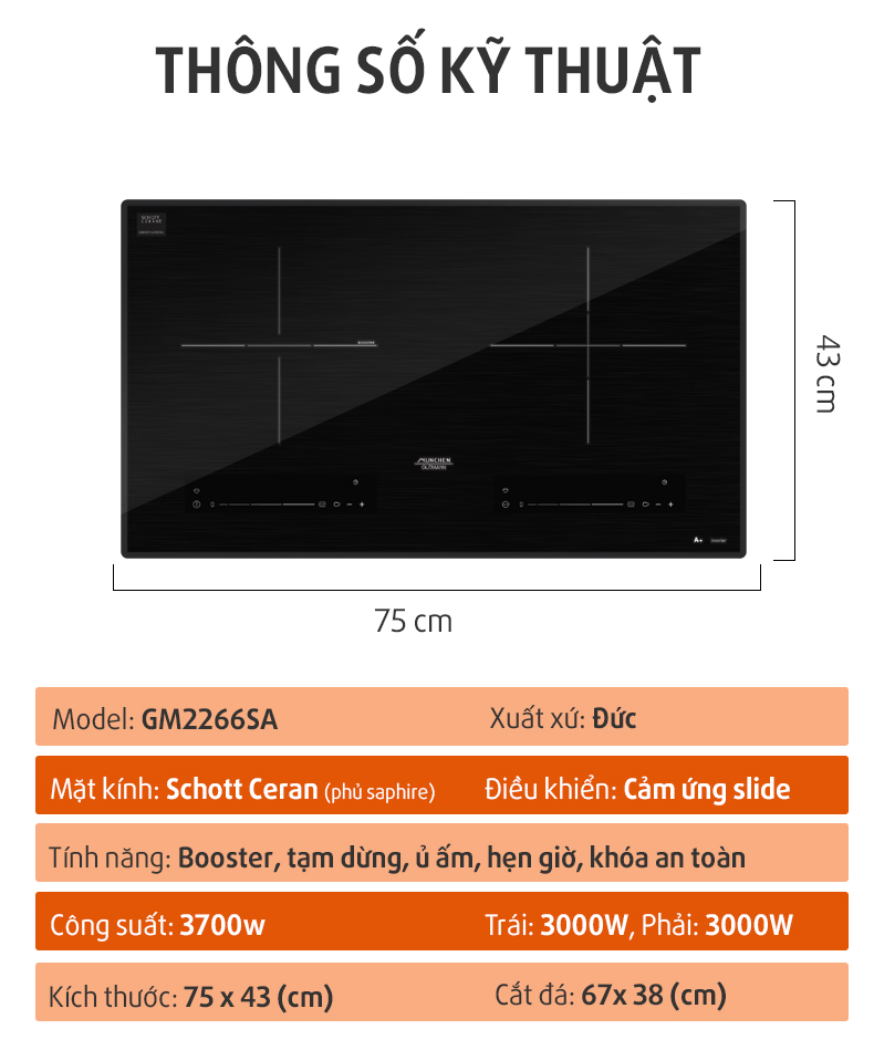 Kính bếp từ Munchen GM 2266SA