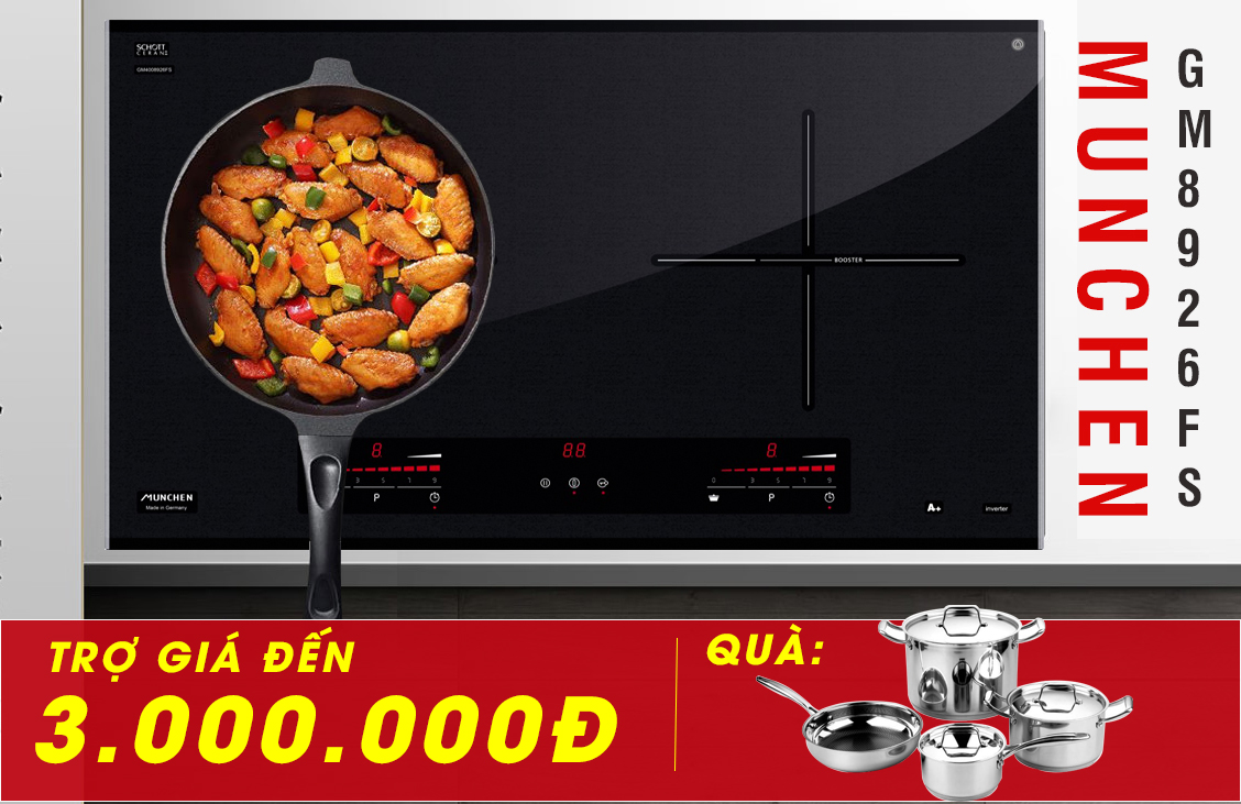 Thời điểm hiện tại mẫu bếp từ Munchen GM8926FS đang được trợ giá đến 3 triệu đồng, kèm theo nhiều ưu đãi hấp dẫn khác tại showroom ủy quyền chính hãng beptumunchen.net