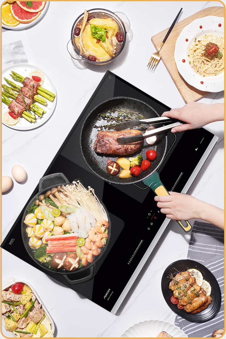 Hai vùng nấu với giao diện hình vuông, đi kèm với hệ thống điều khiển cảm ứng riêng biệt cho từng vùng nấu tạo cho người sử dụng một cảm giác gần gũi dễ sử dụng.
