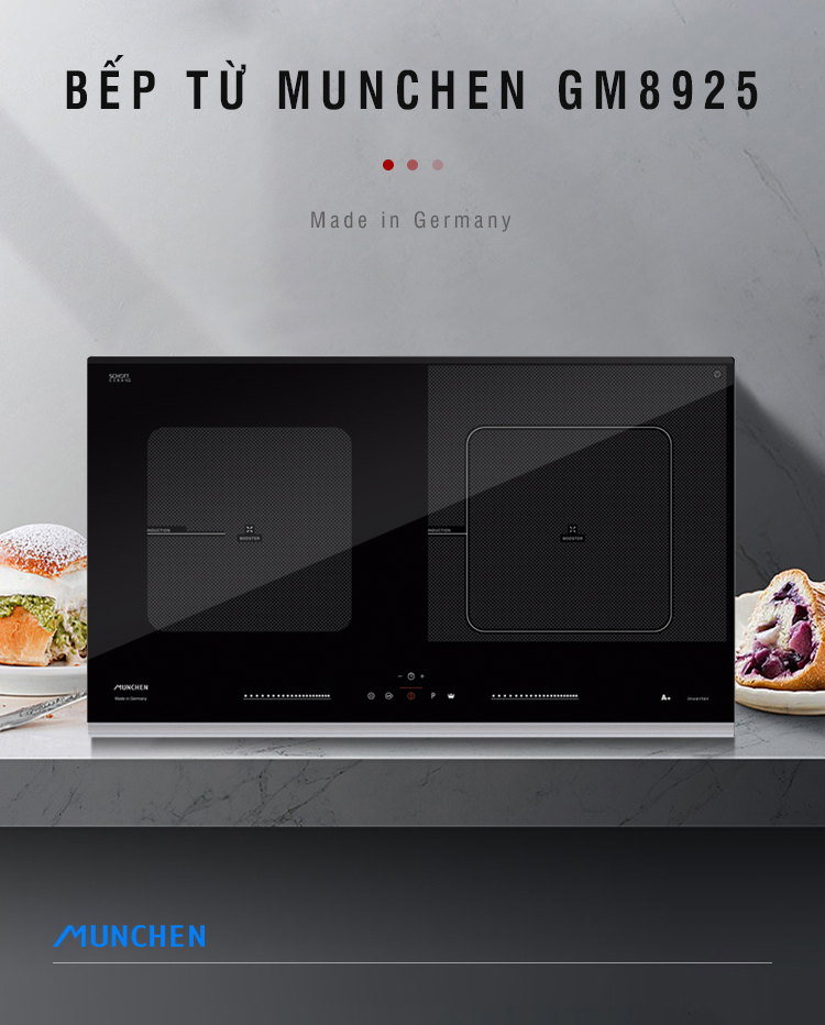 Đáng chú ý, Munchen GM8925 sẽ không làm thất vọng các chị em nội trợ vì các chức năng đun nấu vô cùng thông minh như booster, ủ ấm, rã đông, tự động ninh hầm, hẹn giờ...đảm bảo một trải nghiệm tiện nghi nhất của một chiếc bếp từ Đức có thể mang lạị.