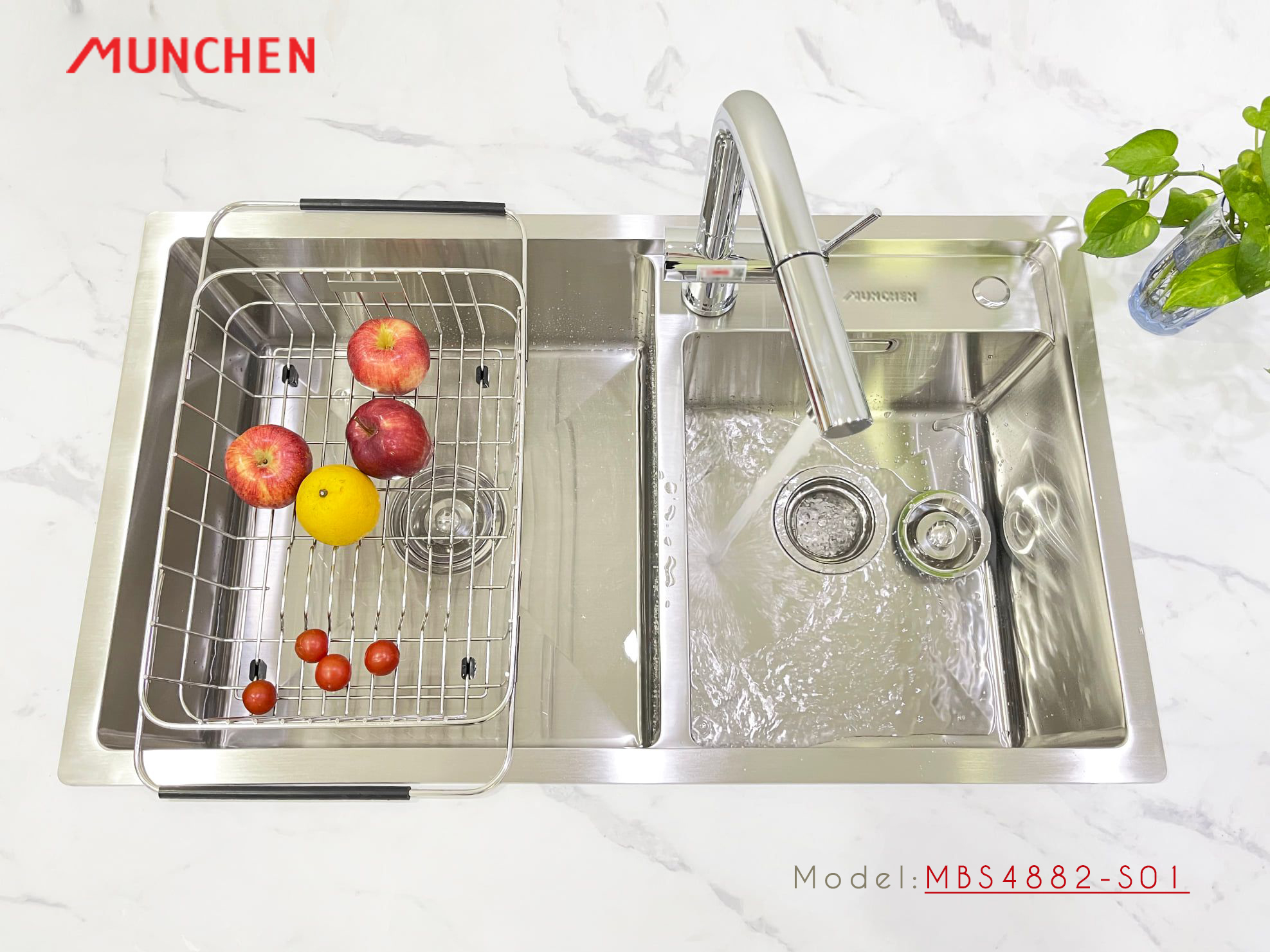 Khó khăn gặp phải trước đây đó là kích thước của mỗi hố quá nhỏ, người nội trợ không đủ không gian để vệ sinh những dụng cụ làm bếp lớn. Hiểu được điều này, Munchen đã cho ra đời các sản phẩm chậu rửa bát 2 hố lớn hơn, kích thước mỗi hố lên đến 420mm.