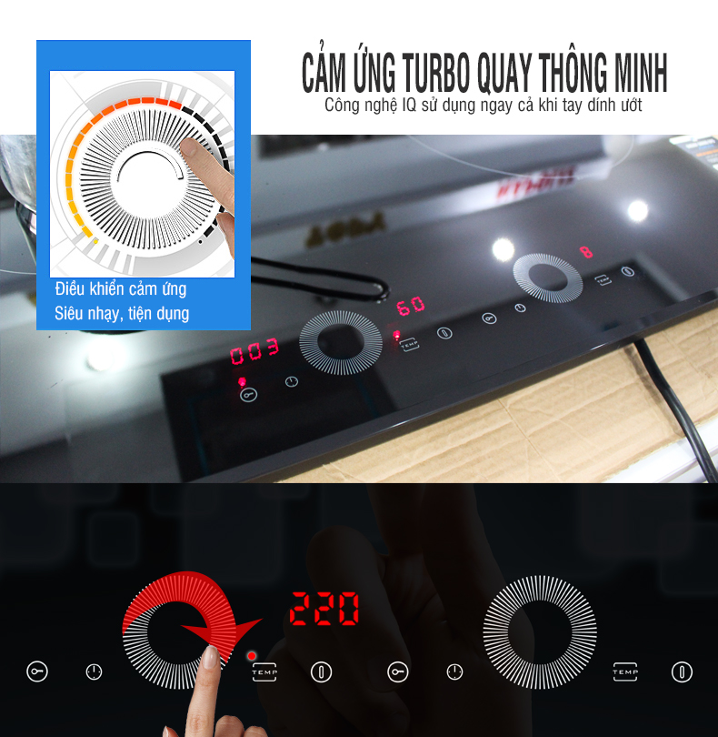 Ở mẫu bếp từ Munchen G60 BK thì bạn sẽ chẳng cần lo gặp phải trường hợp tay ướt nó sẽ không nhận cảm ứng giống như là khi sử dụng các điện thoại smartphone vậy. Các bà nội trợ thoải mái thao tác nấu nướng trên bếp bất kể là tay bạn đang dính ướt, đó là nhờ công nghệ điều kiển IQ thông minh được hãng Munchen sáng tạo và phát triển trên tất cả các mẫu bếp của hãng.