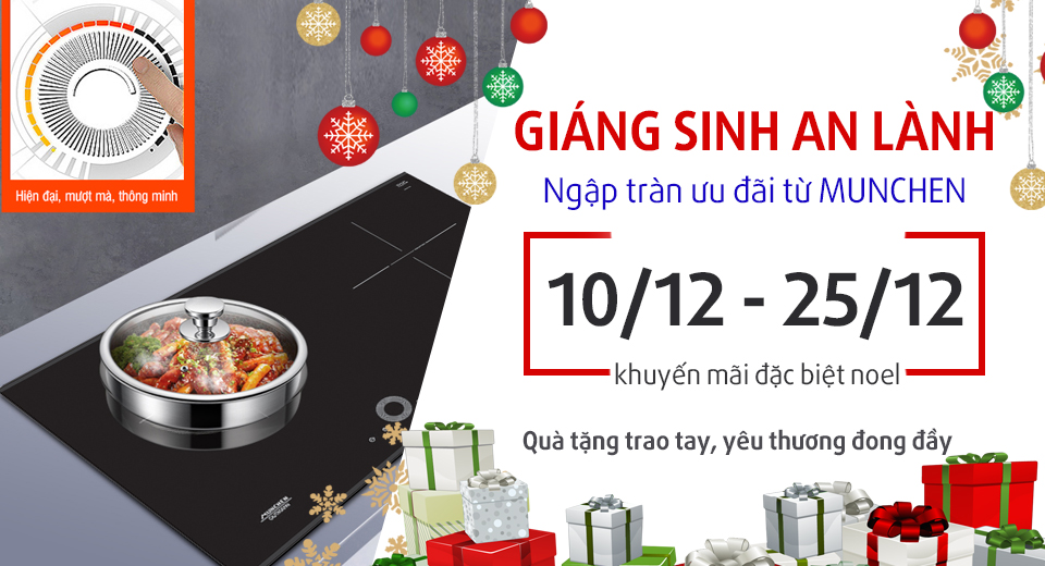 Mùa giáng sinh 2021 lại đến, showroom bếp từ Munchen ủy quyền tung ra chương trình khuyến mãi mừng "GIÁNG SINH AN LÀNH - NGẬP TRÀN ƯU ĐÃI TỪ MUNCHEN " khi mua bếp Munchen nhận ngay quà tặng bất ngờ và giảm thêm tiền mặt trong dịp lễ giáng sinh này. Tham khảo ngay bài viết ngay bài viết để không bỏ lỡ chương trình khuyến mãi này nhé.