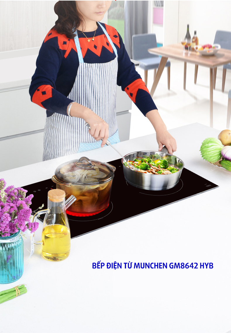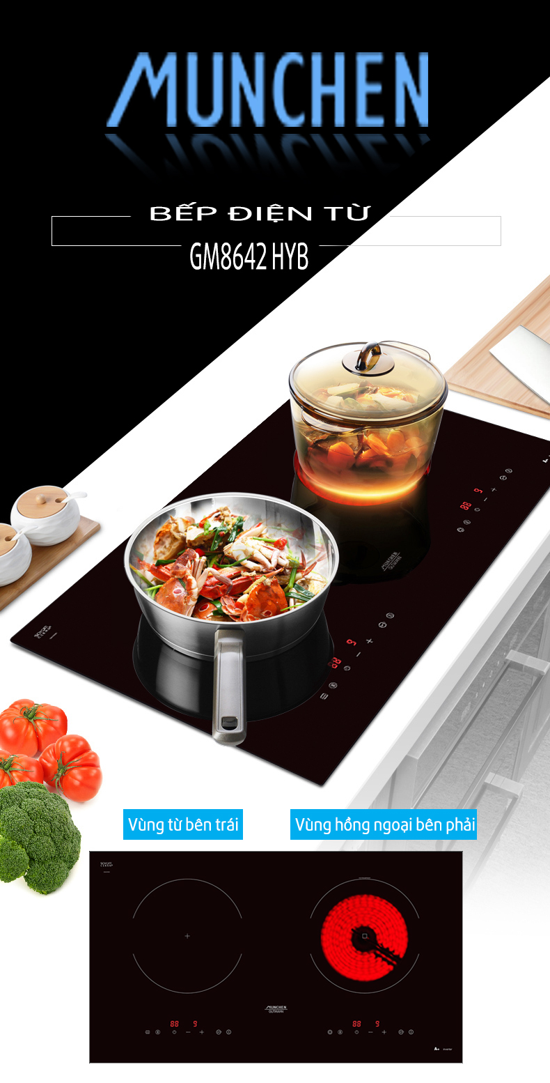 Tại thị trường Việt Nam thời điểm này, rất khó để khách hàng có thế tìm kiếm được một mẫu bếp điện từ mà có thông số, chất lượng cũng như giá cả hơn được mẫu bếp điện từ Munchen GM8642 HYB. Được kỳ vọng là một sản phẩm bếp hỗn hợp điện từ sẽ được tiêu thụ nhiều nhất trong năm 2018 này. Ở bài viết dưới đây tư vấn viên Vân Anh sẽ cho bạn biết lý do tại sao gia đình bạn, nên chọn mua mẫu bếp điện từ Munchen này ngay và luôn nhé (bài viết được trình bày dưới dạng hình ảnh).