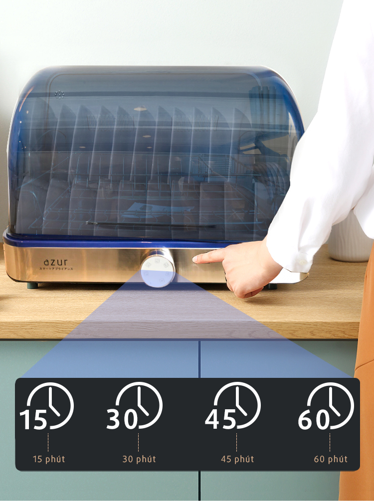 Máy sấy bát Munchen được trang bị 4 chương trình sấy, với từng khoảng thời gian sấy khác nhau, cụ thể là 15 phút, 30 phút, 45 phút, 60 phút. Các chương trình này thuận tiện cho bạn chọn lựa với từng loại đồ sấy khác nhau, thời gian sấy khác nhau.