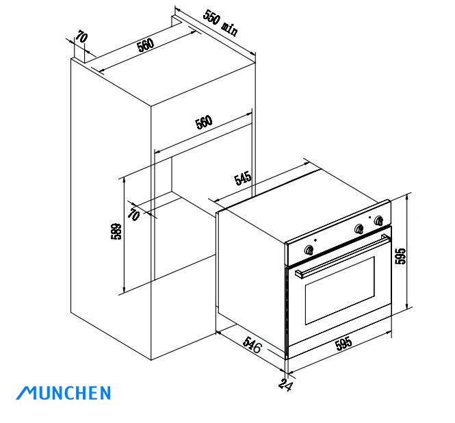 Kích thước lắp âm : Ngang 56cm – sâu 55cm – cao 59cm |
