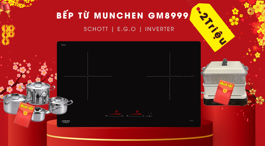 Showroom ủy quyền chính hãng beptumunchen.net đang có chương trình khuyến mãi rất hấp dẫn "TẾT TO QUÀ CHẤT" khi mua các mẫu bếp Munchen, trong đó có một mẫu bếp nhận được sự quan tâm lớn là Munchen GM8999. Sở hữu nhiều ưu điểm nổi bật cả về thiết kế lẫn tính năng, công suất đun nấu mạnh mẽ và công nghệ tiên tiến. Vậy chiếc bếp này có giá bao nhiêu và khuyến mãi gì?
