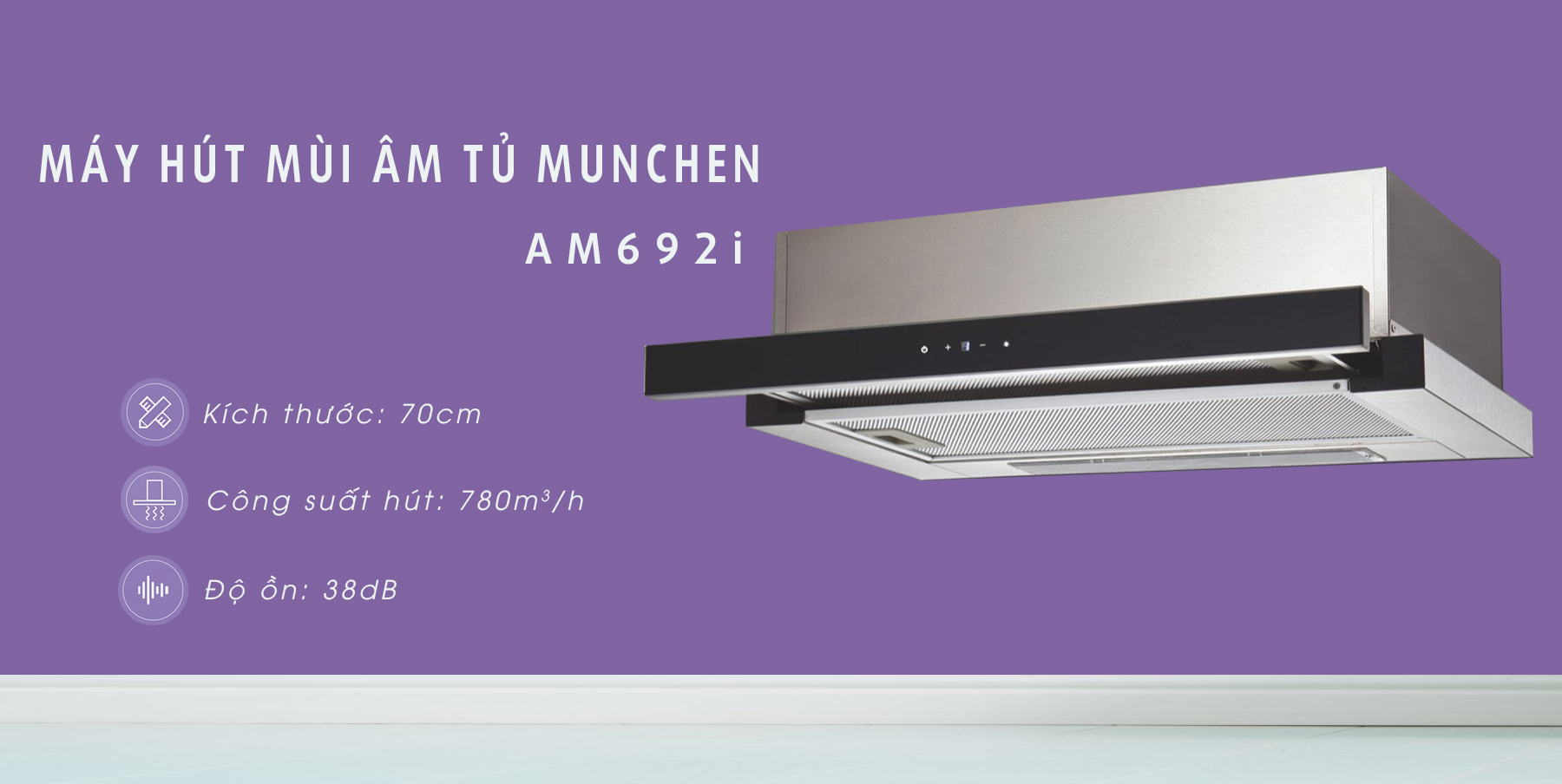 Model máy hút mùi Munchen AM692i sở hữu thiết kế âm tủ nhỏ gọn, giúp bạn tiết kiệm diện tích lắp đặt và sử dụng. Chính vì thế, máy cực kì thích hợp cho không gian nhà bếp nhỏ, căn hộ và chung cư.