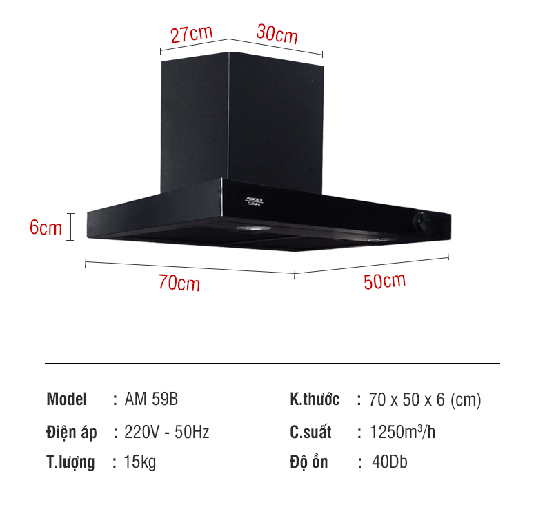 Máy hút mùi Munchen AM 59B thuộc dòng sản phẩm hút mùi chữ T hiện đại và sạng trọng bậc nhất hiện nay tại thị trường Việt Nam. Với màu sắc đen "huyền bí" mang đến không gian sở hữu sự độc đáo, mới lạ có thể thu hút mọi ánh nhìn. Đặc biệt máy có thể phù hợp cho không gian có tủ bếp hoặc không có tủ.
