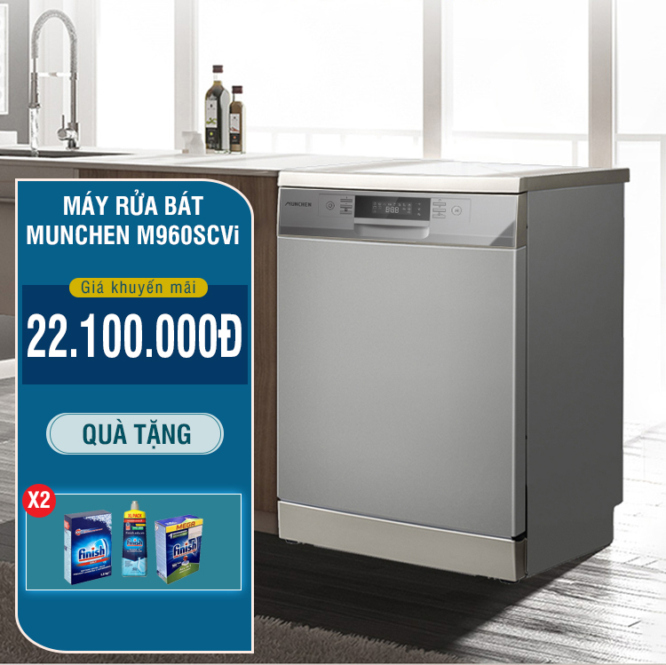 Máy rửa bát Munchen M960SCVi giá 21.2 triệu đồng + combo muối, bột rửa, nước bóng x2