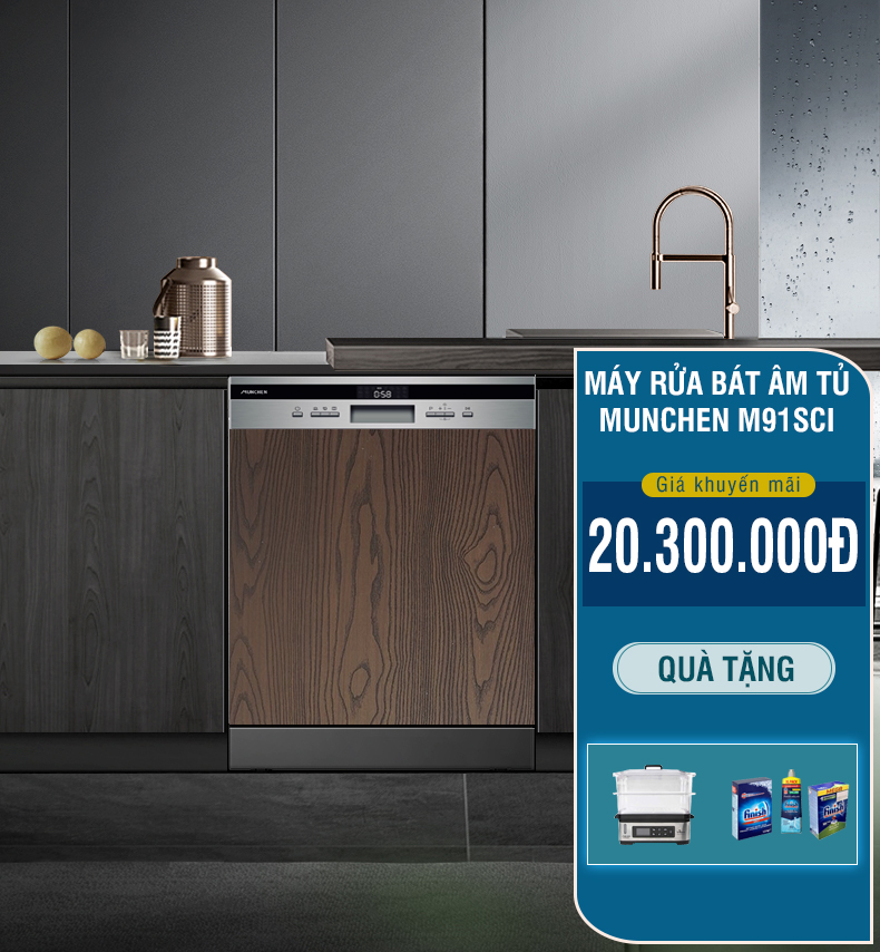 - Giá tốt hốt về ngay: máy rửa bát âm tủ Munchen M91SCI giảm giá kịch sàn