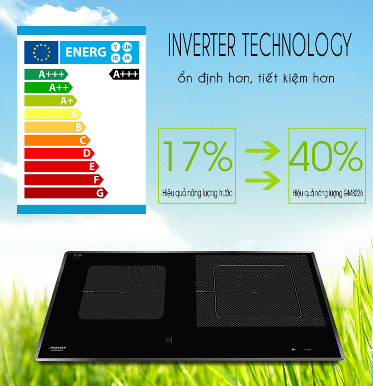 Không chỉ có vậy bếp từ Munchen GM 8226 còn sở hữu công nghệ inverter có khả năng tiết kiệm điện năng lên đến hơn 40% so với sản phảm bếp từ thông thường, hơn nữa khi sử dụng đun nấu đồng thời 2 vùng nấu trên bếp thì công nghệ tự động san nhiệt IC5 turbo sẽ được kích hoạt nhằm chia sẻ cân bằng công suất của bếp nhằm tránh hiện tượng quá tải cho hệ thống điện trong gia đình.