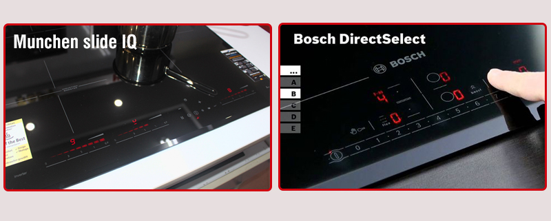 - Hệ thống điều khiển cảm ứng Slide IQ tách riêng cho mỗi vùng nấu của bếp từ Munchen GM 3631 tạo cho người sử dụng cảm giác thân thiện dễ thao tác hơn so với kiểu điều khiển Directselect dùng chung thanh trượt cảm ứng tăng giảm công suất của bếp từ Bosch serie8. Điều này thấy rõ rệt nhất ở những người nội trợ lớn tuổi khi sử dụng bếp từ Bosch serie 8 sẽ gặp rất nhiều khó khăn khi thao tác.