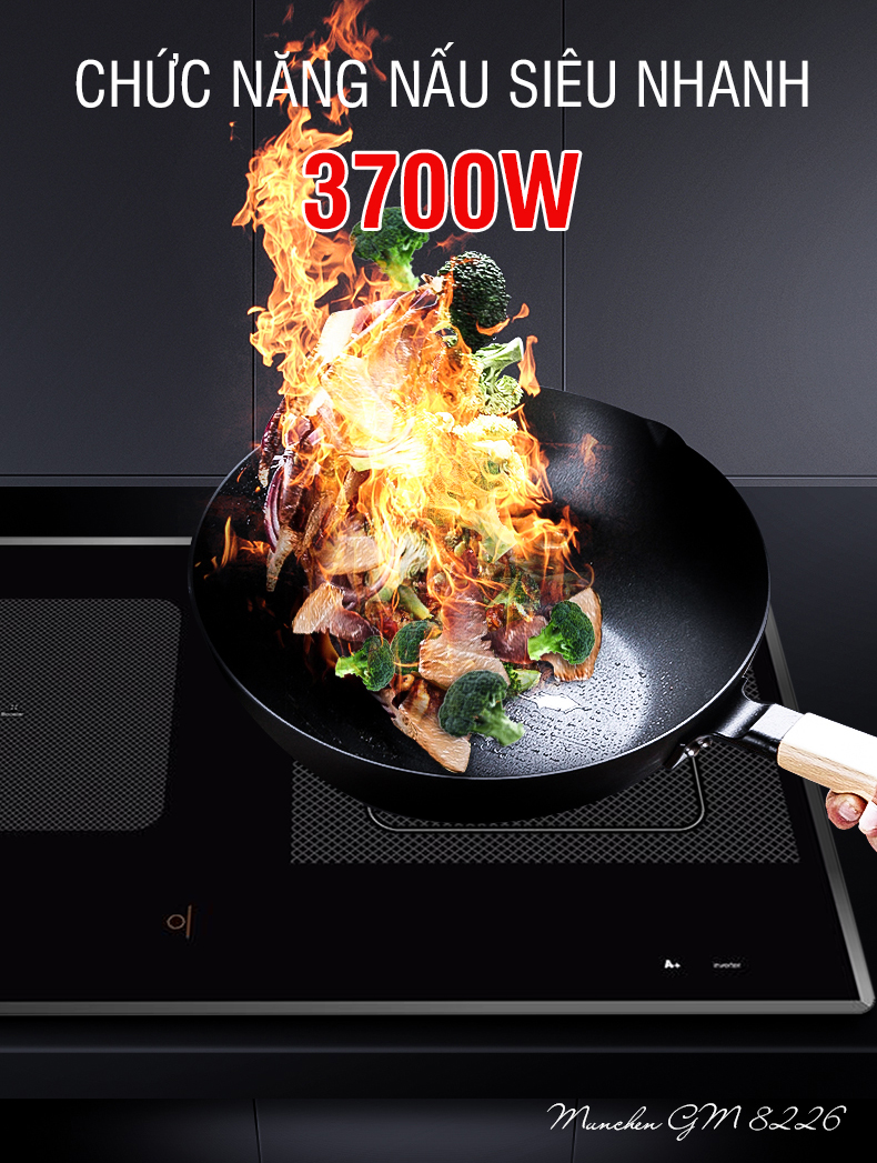 Chức năng siêu nấu nướng booster trên dòng bếp Munchen GM 8226 sẽ giúp bếp đạt công suất cao tới 3700W (3.7kw) sẽ hoàn toàn đảm bảo cho bạn có thể tha hồ chế biến các loại món ăn bất kì một cách đơn giản nhanh chóng mà không hề tốn thời gian quá nhiều, đặc biệt đảm bảo vẫn giữ được độ ngon của đồ ăn khi nấu nướng ở mức booster.
