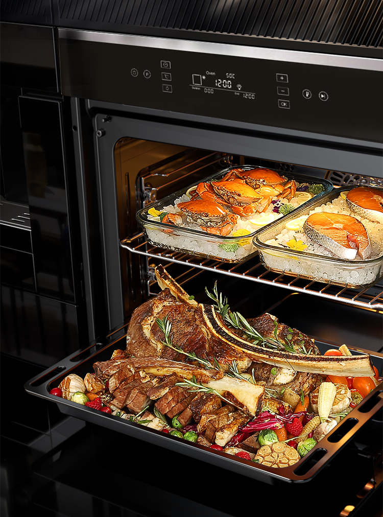 Khoang lò có dung tích hơn 50 lit và được chia làm 2 ngăn nướng đảm bảo cho bạn chế biến được nhiều món cùng số lượng thực phẩm nướng được nhiều hơn so với sản phẩm lò nướng cùng loại. Và được tráng men màu đen chống bám dính, dễ dàng lau chùi và vệ sinh.
