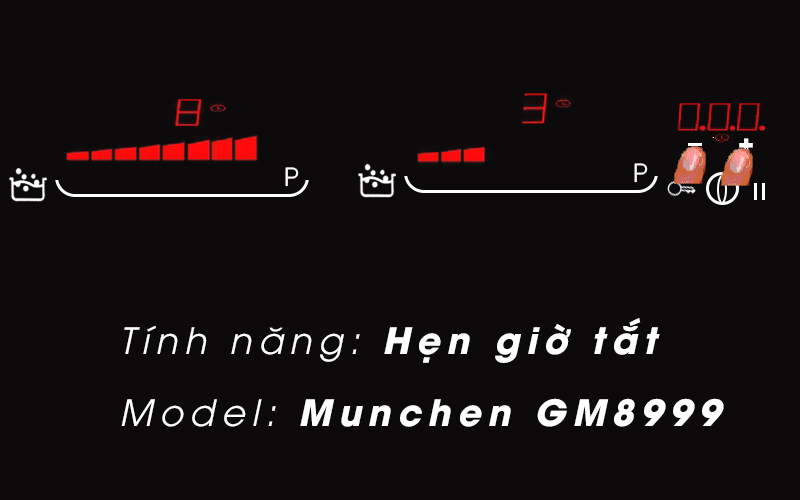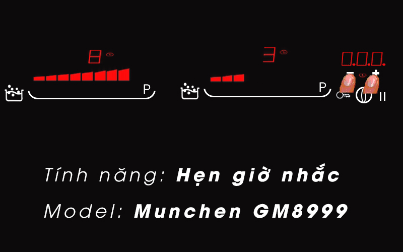 Tính năng Hẹn giờ và Hẹn giờ nhắc là những tính năng thông minh tiện lợi trong quá trình nấu nướng của mẫu bếp từ Munchen GM8999. Hiểu rõ từng tính năng và khai thác tối đa tác dụng của từng tính năng giúp người dùng tiết kiệm thời gian rất nhiều khi vào bếp.