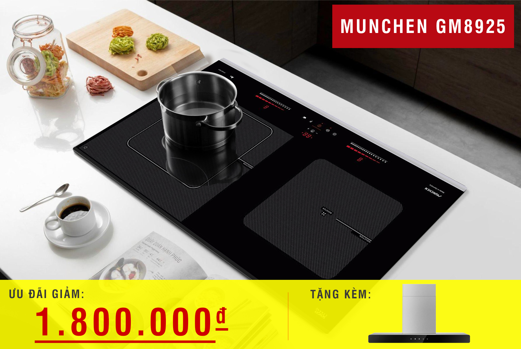 - Tặng kèm: máy hút mùi Munchen AM98W.