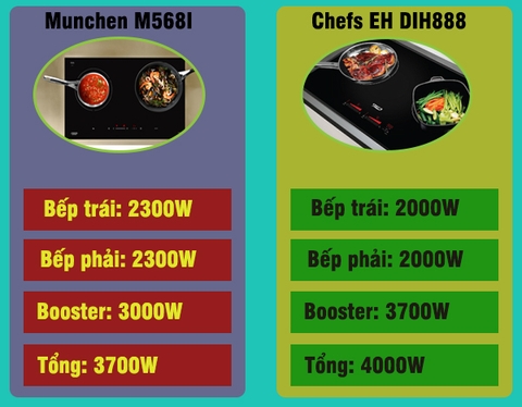 Lựa chọn bếp từ có tích hợp công nghệ INVERTER, luôn là ưu tiên hàng đầu của các gia đình hiện nay, tuy nhiên việc chọn bếp của hãng nào tốt hơn thì quả là rất khó khăn cho các khách hàng, vì hãng nào cũng quảng cáo là bếp của mình tốt, tiết kiệm điện...Vậy nên để giúp khách hàng dễ quyết định hơn khi chọn bếp từ inverter thì tư vấn viên Vân Anh của showroom ủy quyền Munchen sẽ so sánh thông số của 2 mẫu bếp từ Inverter Munchen M568I và bếp từ Chefs DIH888. So sánh...