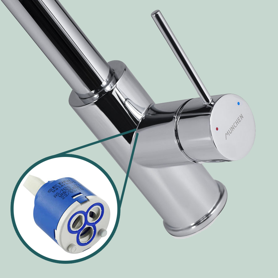 Được ví như "trái tim" của một chiếc vòi rửa bát, lõi trộn nóng lạnh luôn là một phần vô cùng quan trọng, hiểu được điều đó thế nên hãng Munchen đã lựa chọn lõi trộn thương hiệu SEDAL (Sedal Ceramic Catridge – thương hiệu số 1 tại Tây Ban Nha) dựa vào uy tín và chất lượng được đã được kiểm nghiệm.