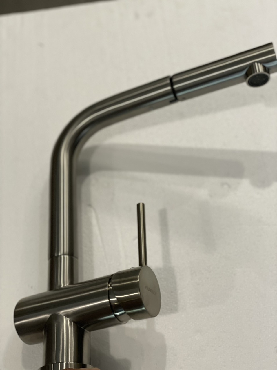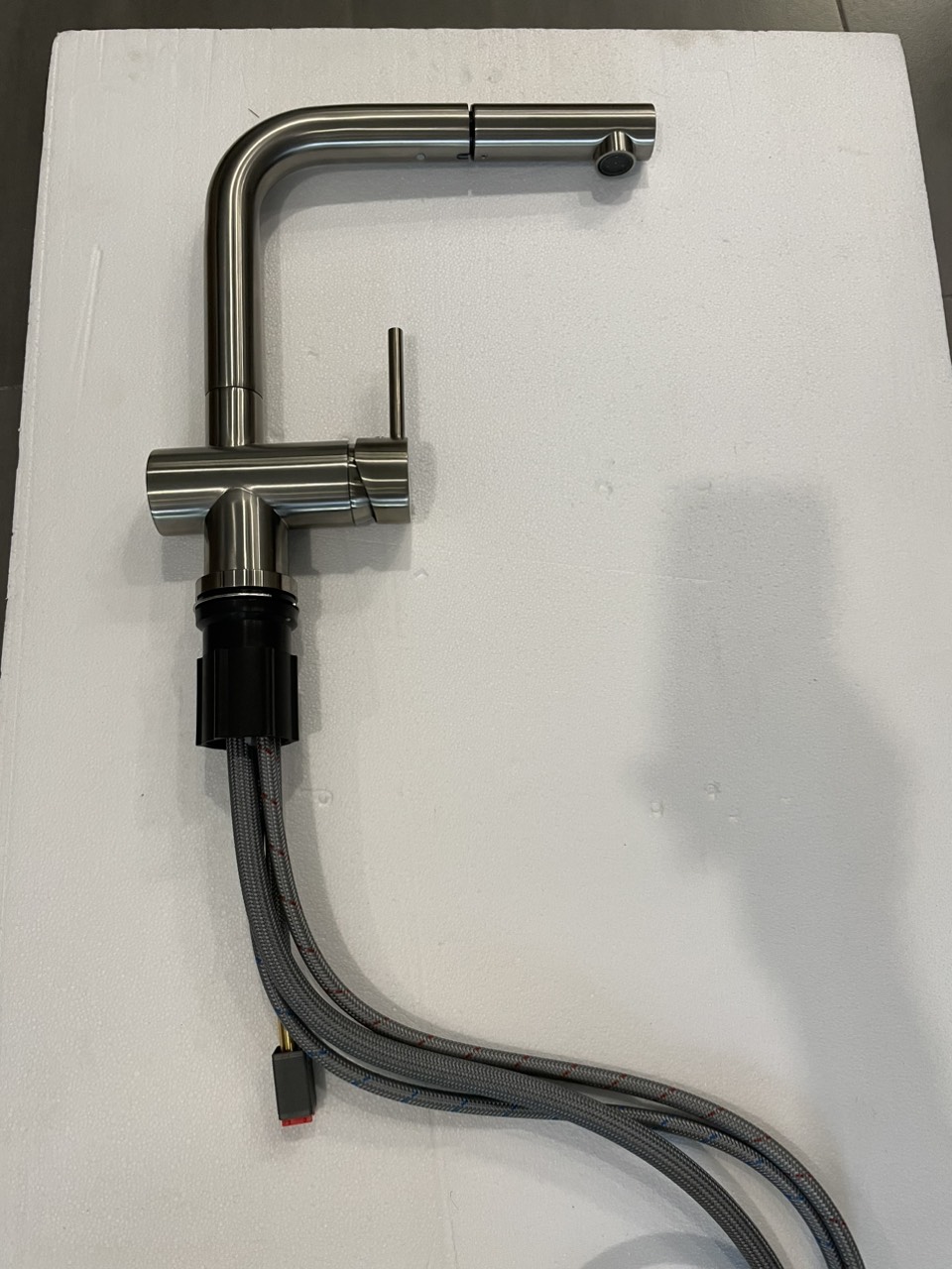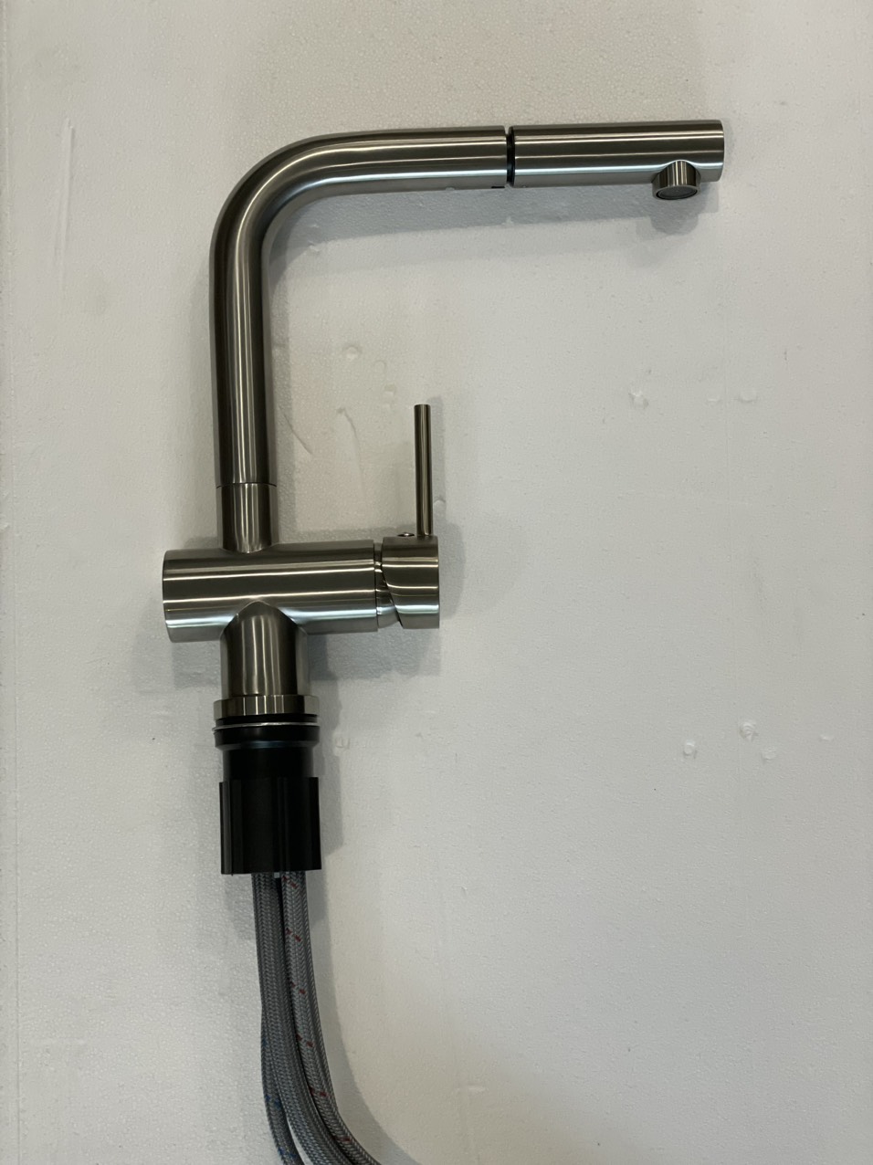 Hình dáng: Vòi thiết kế bo tròn, đầu vòi cong. Một tay vòi nằm ngang